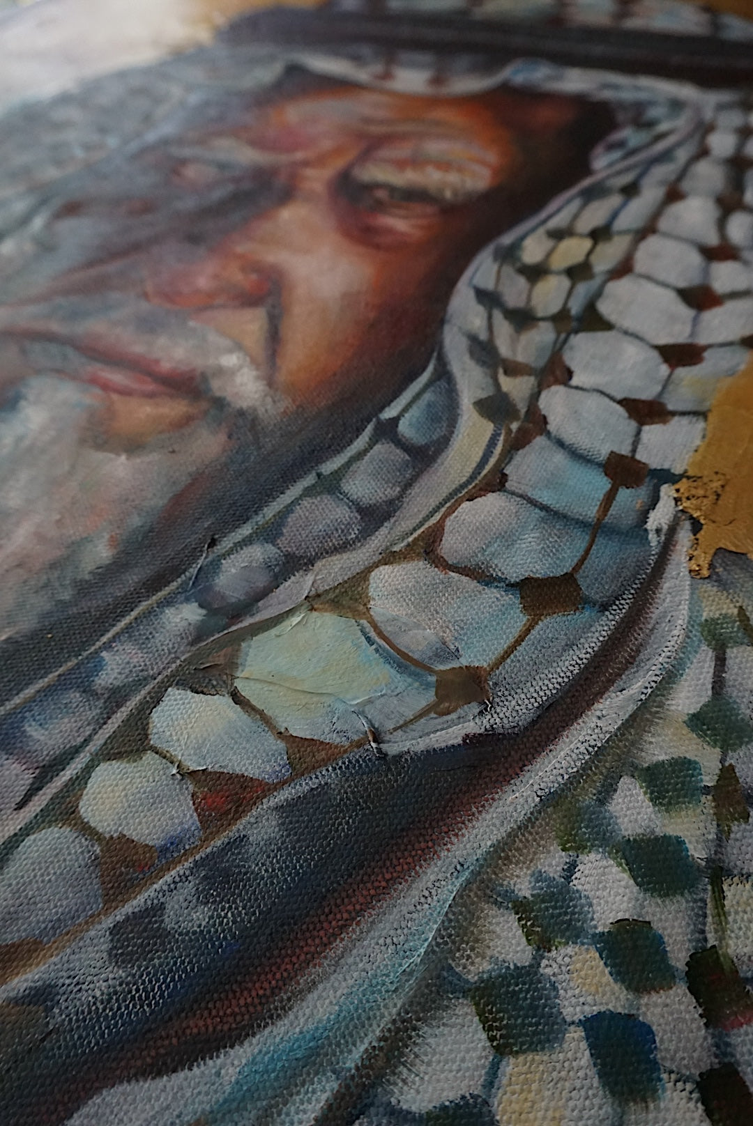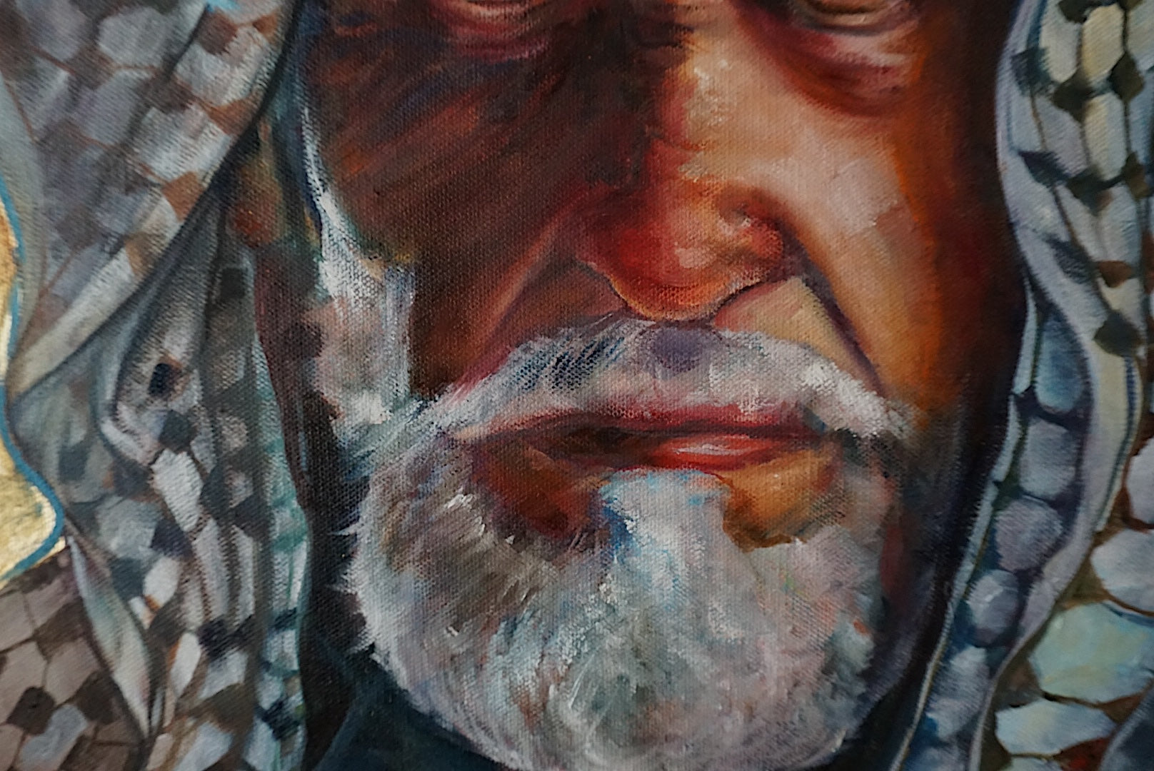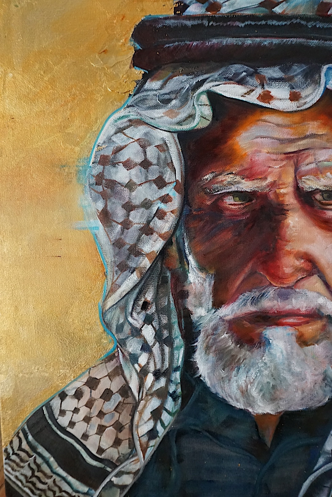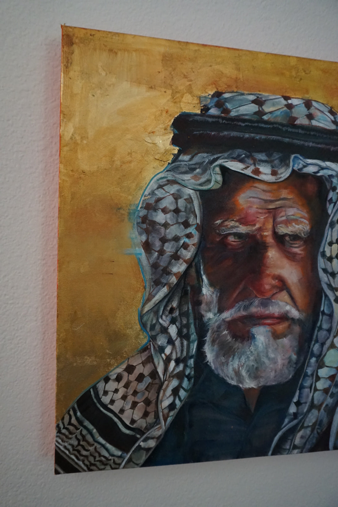 Crafted with acrylic wash and ink base, rich oils on top, and surrounded in 24K gold leaf (glazed).